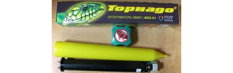 Отпугиватель змей «Торнадо БОЗ.01» - инновационная российская разработка для защиты различных территорий от змей. Прибор не содержит каких либо ядов, химии и вредных веществ. Принцип работы отпугивателя состоит в генерировании в землю низкочастотных шумов и вибрации, частоты которых специально подобраны для влияния на змей. Такой звук и вибрация вызывают у пресмыкающихся чувство тревоги и дискомфорта, при этом частота воздействия постоянно меняется в заданном диапазоне, что исключает возможность привыкания змей к работе прибора.